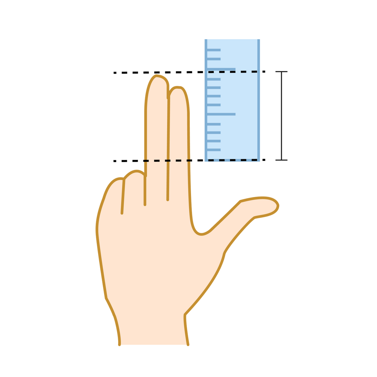 Remove your finger and measure from the tip to your mark against the ruler. Use this length (cm) to find your size in our Size Guide below.
